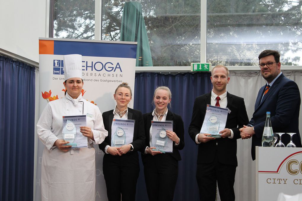 Nach zwei spannenden Wettkampftagen in Oldenburg stehen die Landesmeister im niedersächsischen Gastgewerbe fest: Bei den Köchen holte Til Eppler (21 Jahre) vom Gasthaus Müller in Barsinghausen die Goldmedaille. Zugleich ist er punktbester Teilnehmer der Jugendmeisterschaften. Steffi Runge (22 Jahre) vom Restaurant Rauchfang Oldenhöfen in Scheeßel gewann die Medaille bei den Restaurantfachleuten. Den ersten Platz bei den Hotelfachleuten errang Leonie Kerl (19 Jahre) vom Romantik Hotel Gebhards in Göttingen und der erste Preis für die Fachleute in der Systemgastronomie ging an Linda Berghaeuser (25 Jahre) vom Restaurant Vapiano in Osnabrück. Den Teampokal sicherte sich wie im vergangenen Jahr das Team der BBS Ritterplan in Göttingen.